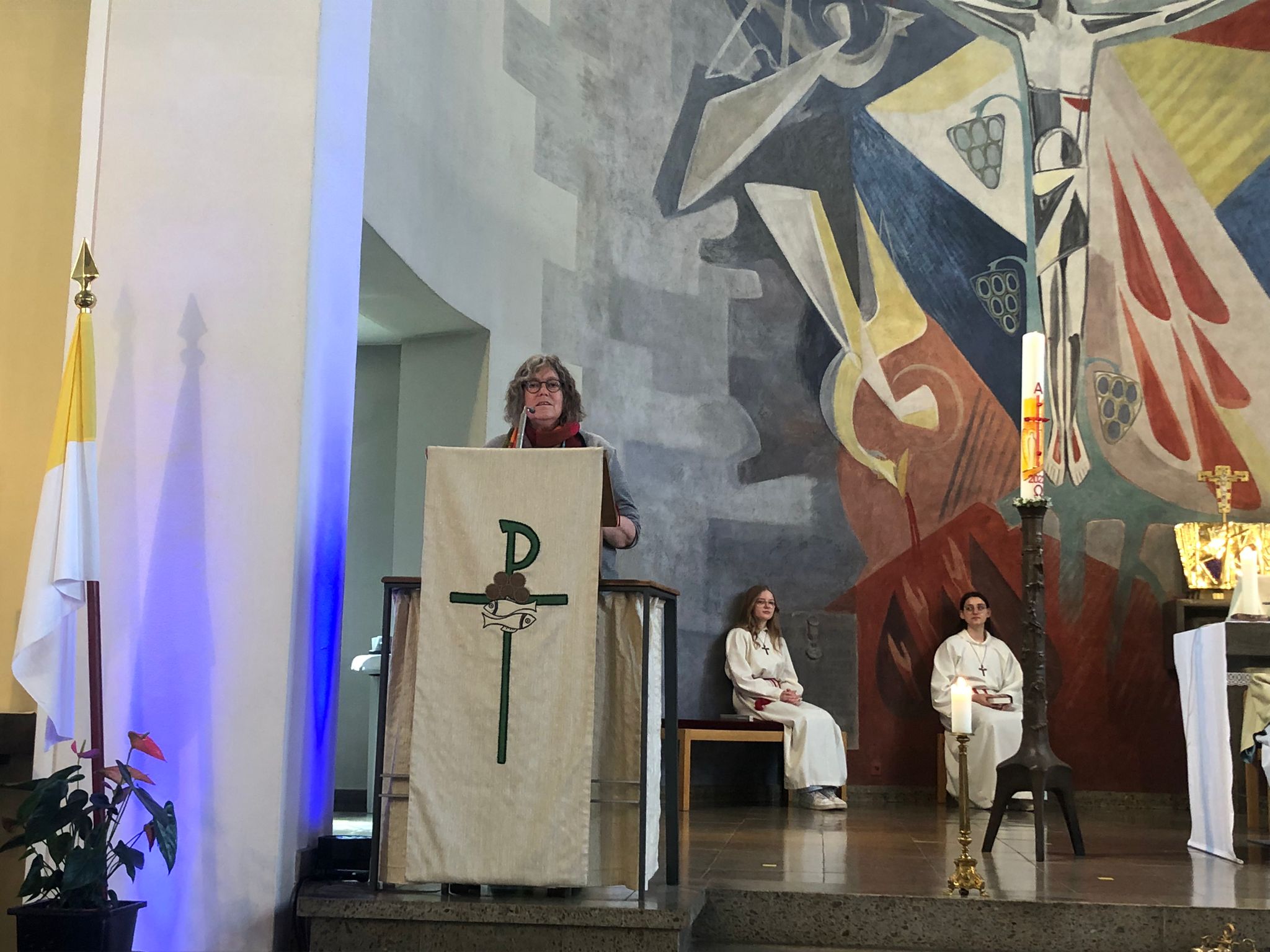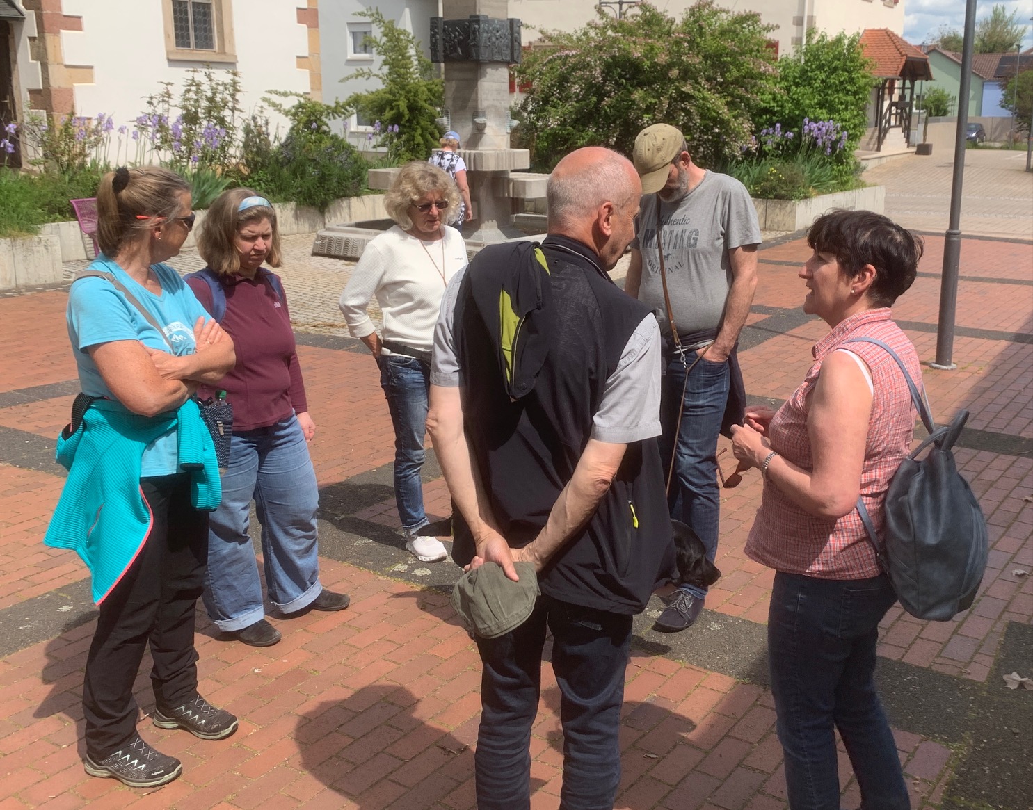 Am Samstagmorgen starteten wir mit einem Morgenimpuls in der gegenüberliegenden Kirche. Trotz Baustelle war es feierlich, denn der Küster zündete für uns alle Kerzen im Altarraum an. Nach dem Frühstück hielten wir unsere Vollversammlung ab. Es wurde über die HTW 2023 sowie über die Zukunft der HTW diskutiert, siehe eigenes Protokoll. Am Nachmittag machten wir uns auf zum Dieterskirchel. Hier versammelten wir uns zu einem Friedensgebet ab und pflanzten einen Holzapfel, eine alte Apfelsorte. Andreas Holzapfel hatte ihn gespendet. Bevor es zurück ging, stärkten wir uns mit Kaffee und Kuchen an der Kapelle. Danach arbeitete ein Teil der Gruppe im Pfarrzentrum an der Mitgestaltung der Sonntagsmesse. Sie hatte das Thema „Ich sehe dich, ich brauche dich, ich stehe für dich ein.“ Für den Abend hatte Waltraud Zehnder-Liedke eine biblische Weinprobe organisiert.“ Für den Abend hatte Waltraud Zehnder-Liedke eine biblische Weinprobe organisiert. Es war keine Weinprobe im herkömmlichen Sinne, denn alle Weinnamen hatten einen Bezug zur Bibel. Humoristisch wurde die Weinprobe von Pfarrer Dr. Gerd Babelotzky mit den passenden Bibelstellen belegt. Herr Babelotzky hat die Biblische Weinprobe in Kirrweiler initiiert und die Texte erstellt.
